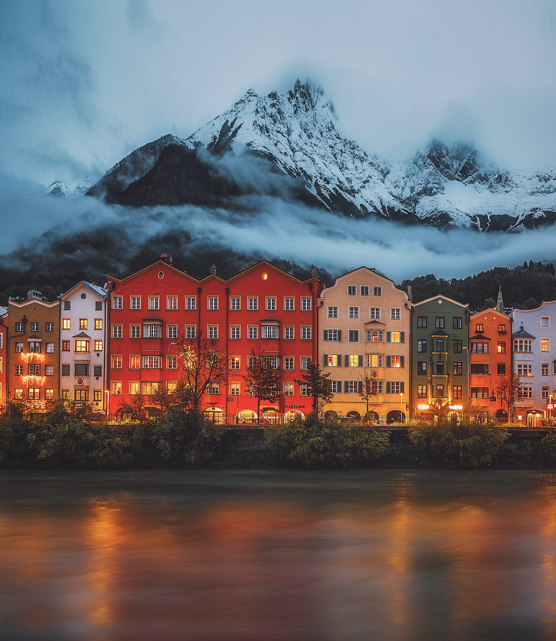 Think torchlit evening walks through medieval villages. Tobogganing down floodlit mountain tracks. Lunch in alpine huts serving hot chocolate so thick it feels like pudding. In Innsbruck, colourful townhouses and imperial history add cultural depth between ski days.