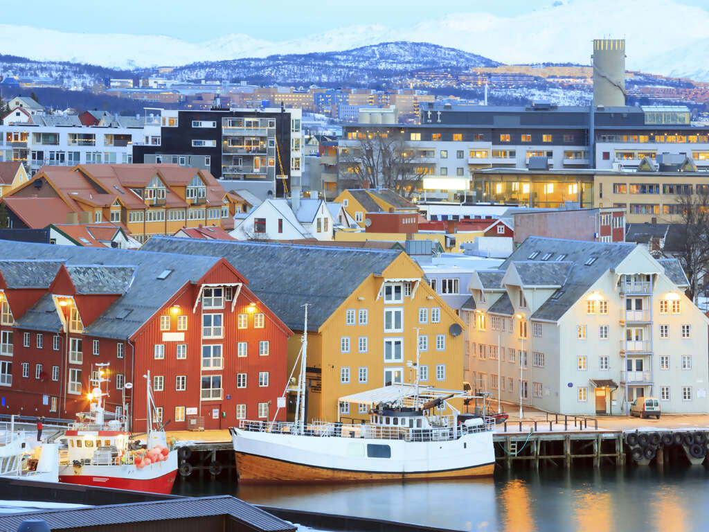 Tromsø, a city in the very northernmost part of Norway, is a major cultural hub above the Arctic Circle and is one of the best places to view the spectacular Northern Lights in winter. The city centre of Tromsø contains the highest number of old wooden houses in Northern Norway, the oldest house dating from 1789. It’s famed as a viewing point for colorful Northern Lights that sometimes light up the nighttime sky.